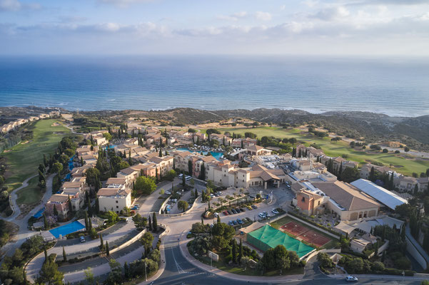 Aphrodite Hills ist das Synonym für wunderschöne Urlaubserlebnisse in einer luxuriösen Oase der Ruhe auf der Sonneninsel Zypern im östlichen Mittelmeer. Das Resort liegt mit seinen Einrichtungen auf zwei Plateaus etwa 300 m über dem Meer. Etwa in der Mitte zwischen den zyprischen Städten Limassol und Paphos, dort wo die von Bergen geprägte Steilküste endet und der hügelige Küstensaum bis Paphos führt, befindet sich an der südwestlichen Küste der Insel das Aphrodite Hills Resort.